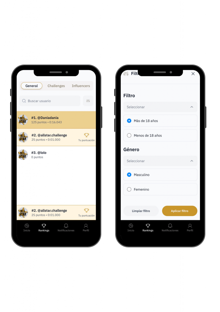 - Ver también a nuestros influencers, con sus posiciones en cada Challenge